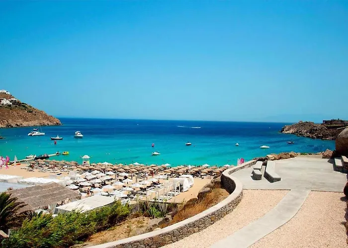 Het hart van Super Paradise Beach kan worden bereikt in 5 minuten lopen van het vakantiehuis, en cultuurgerichte locaties zoals het Lena's Huis liggen op rijafstand van 10 minuten. De Matoyianni straat is net om de hoek bij de strand villa gelegen, en Super Paradise busstation is op 450 meter afstand. 70 Steps Super Paradise Mykonos villa is op 5 minuten loopafstand van Super Rockies Resort gelegen.